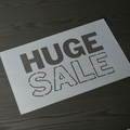 Our reusable HUGE SALE stencil lets you promote your sale anywhere you want — storefront windows, sidewalks, floors, walls, pop-up stands and more.